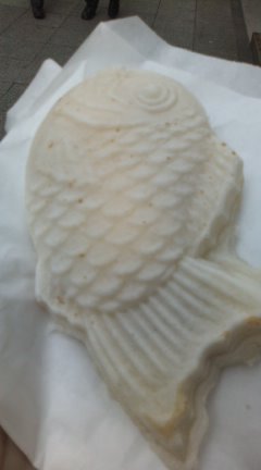 中にカスタードとカラメルが入った白鯛焼き「プリンたいやき」(たまたま昨日から発売だったんですよ)↓やら